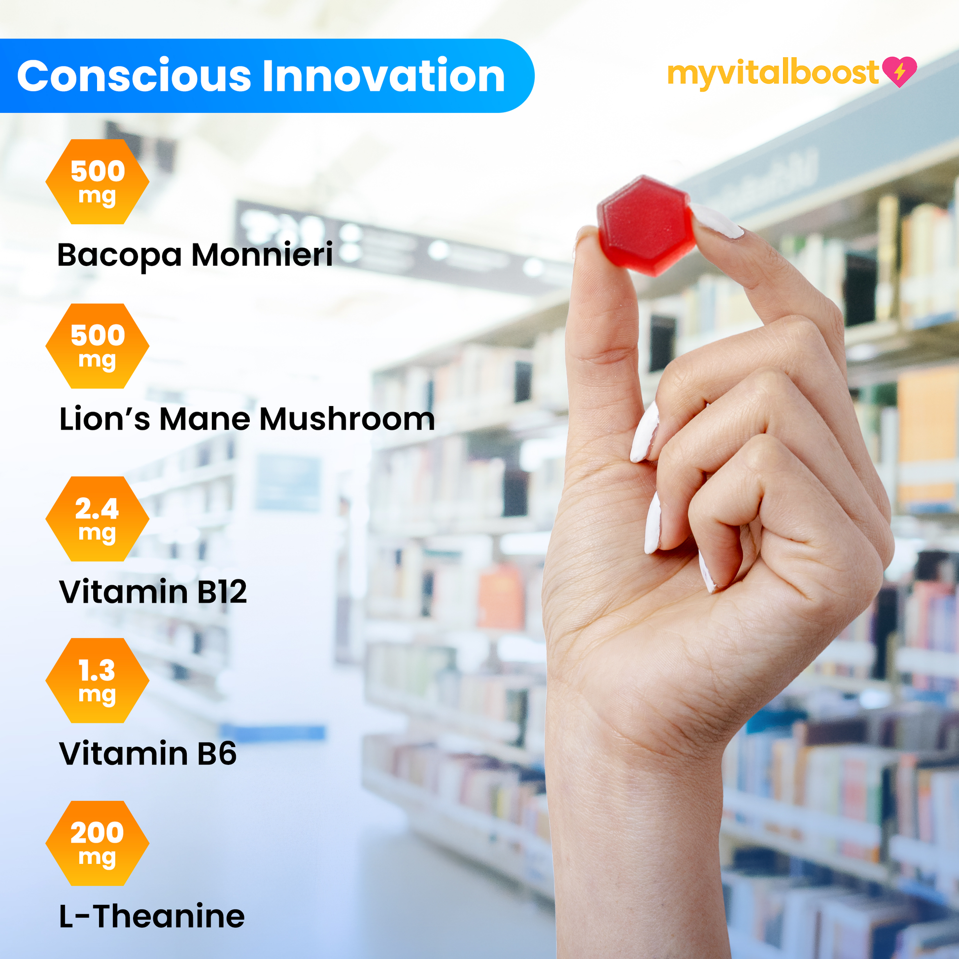 Unlock your mind’s potential with myVitalboost Brain Supplement Gummies! Designed to support your cognitive function, these delicious gummies combine natural nootropics and essential nutrients to enhance memory, concentration, and mental clarity. Whether you're a student trying to ace exams, an office worker aiming to stay sharp during your 9-5, or someone looking to improve brain health over time, our brain-boosting gummies are the perfect solution.